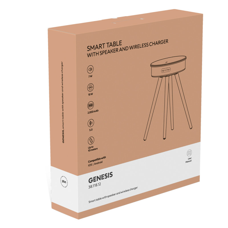 Pametni sto sa integrisanim zvučnikom i bežičnim punjenjem, namenjen svakodnevnoj upotrebi u kancelariji, poslovnim prostorima ili kao savremeni promotivni proizvod. Omogućava bežično punjenje mobilnih uređaja snage do 15 W i reprodukciju zvuka putem ugrađenog bežičnog zvučnika od 7 W. Isporučuje se u poklon kutiji sa uključenim Type-C kablom za punjenje. Ključne karakteristike: Pametni sto sa zvučnikom i bežičnim punjenjem • Bežično punjenje do 15 W • Snaga zvučnika 7 W • Domet rada do 10 m • Vreme punjenja do 4 sata • Vreme reprodukcije do –5 sati • Type-C kabl za punjenje uključen • Poklon kutija