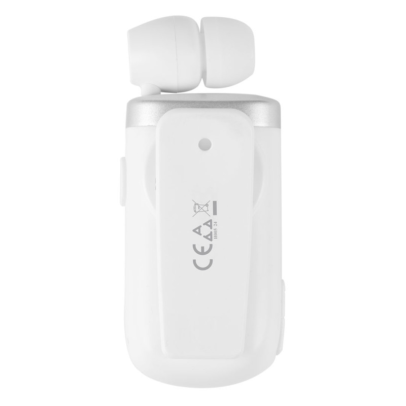 Bluetooth verzija 5.3 • Jedna izvlačiva slušalica (retractable) • Vreme razgovora: do 18 h • Stand-by vreme: do 120 h • Redukcija buke • Vibracioni signal za pozive • Vodootporno i otporno na znoj • Klipsa za kačenje • Priključak za punjenje: Type-C