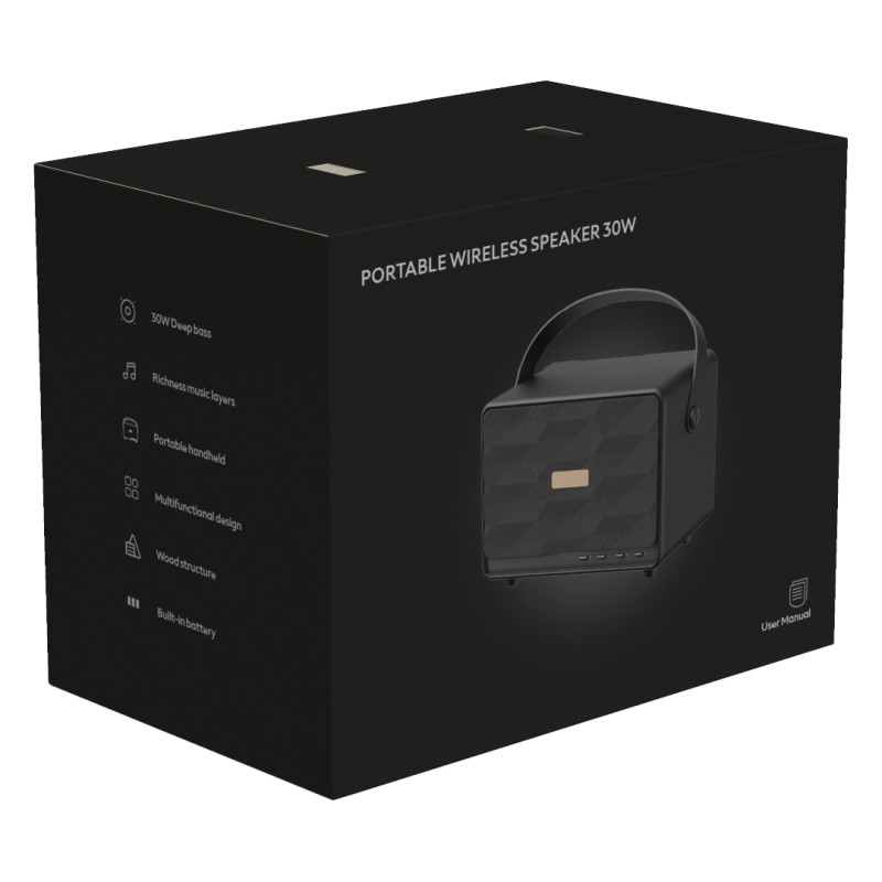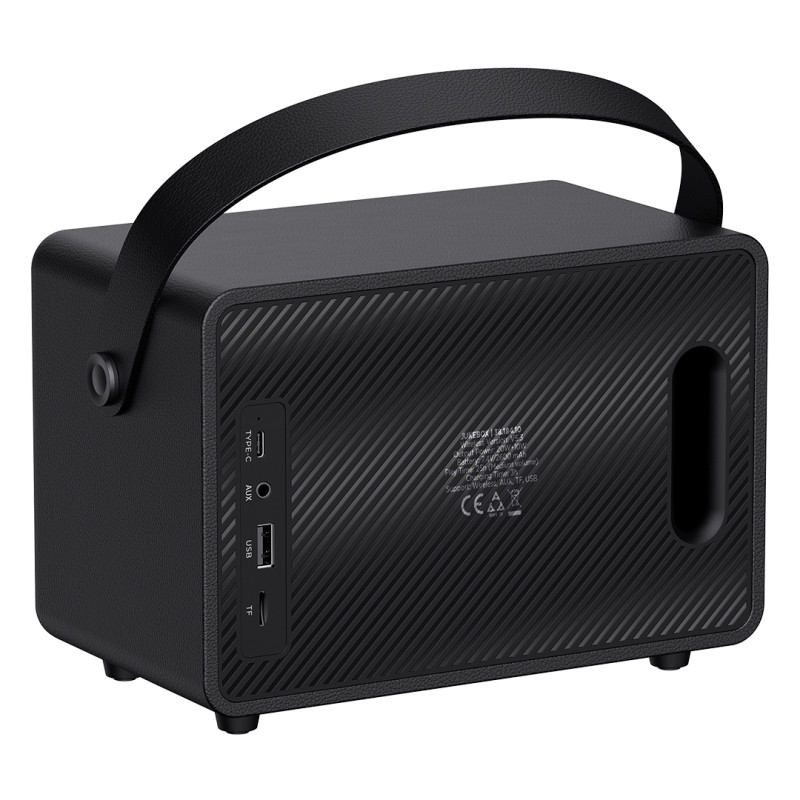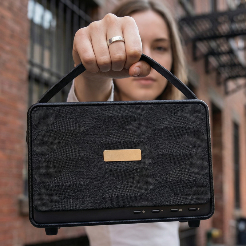 Bežični zvučnik snage 30 W, izrađen u premium kvalitetu, namenjen korisnicima koji traže snažan zvuk i prepoznatljiv dizajn. Retro izgled u kombinaciji sa kožnom ručkom za nošenje daje mu vizuelni identitet, dok stereo zvuk i naglašen bass omogućavaju kvalitetnu reprodukciju u različitim okruženjima. Dugotrajna baterija i više opcija povezivanja čine ga pogodnim za kućnu, kancelarijsku i promotivnu upotrebu. Isporučuje se u poklon kutiji sa uključenim Type-C kablom za punjenje.