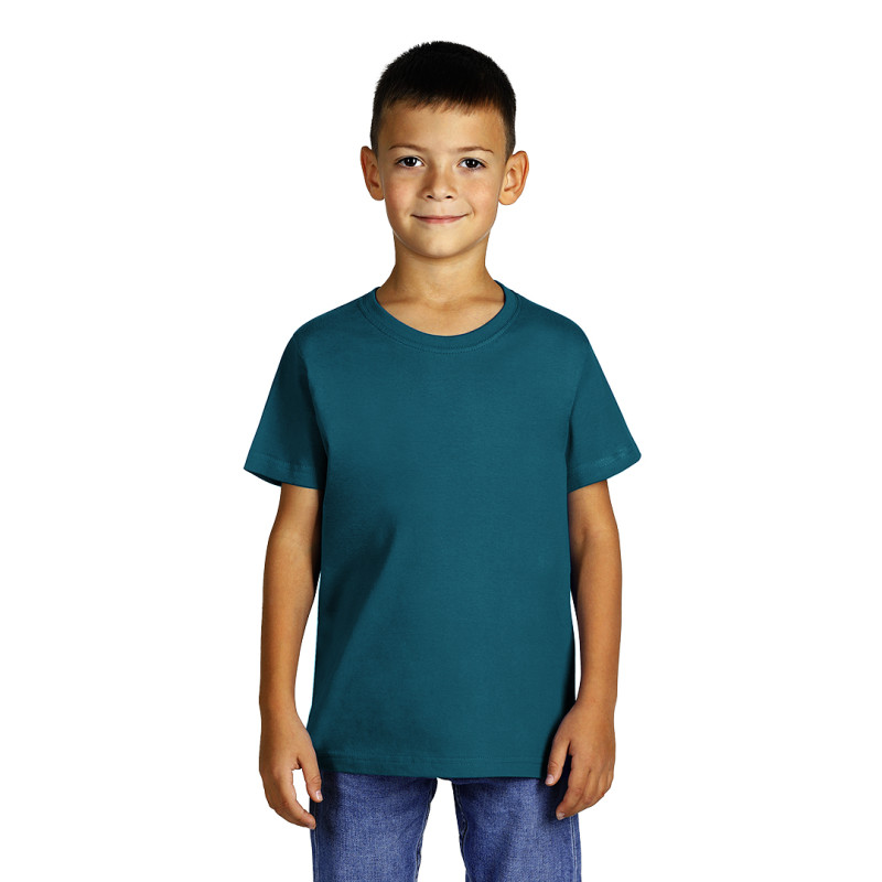 Dečja majica, 150 g/m2, šivena sa strane, dupli štepovi na renderu, rukavima i dnu, okovratnik ojačan trakom
