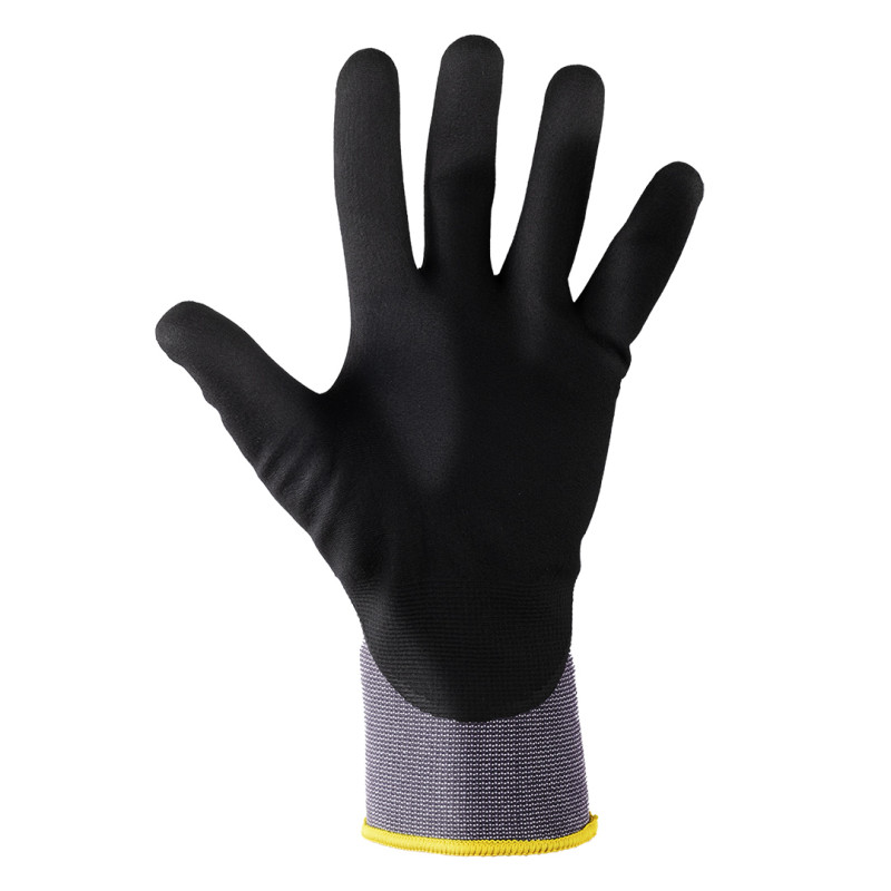SG FLEXY su zaštitne radne rukavice namenjene zahtevnijim radnim uslovima u kojima je potrebna povećana otpornost na habanje, kao i sigurno rukovanje u kontaktu sa uljima, mastima i industrijskim tečnostima. Dizajnirane su za profesionalnu upotrebu u industrijskim i tehničkim delatnostima. Izrađene su od 100% najlonskog pletiva sa nitrilnim premazom na dlanu i prstima. Najlonska osnova obezbeđuje stabilnu strukturu i dobru ergonomiju rukavice, dok nitrilni premaz formira izdržljiv zaštitni sloj sa visokom otpornošću na habanje i klizave površine. U poređenju sa PU premazom, nitril pruža bolju dugotrajnost i pouzdanije performanse u grubljim radnim uslovima. Namenjene su za industriju, održavanje, servisne i montažne poslove, logistiku i automobilski sektor. Ključne karakteristike: Zaštitne radne rukavice • 100% najlon • Nitrilni premaz na dlanu i prstima • Povećana otpornost na habanje • Otpornost na ulja, masti i industrijske tečnosti • Sigurno prianjanje na klizavim površinama • Pogodne za zahtevnije radne uslove • EN ISO 21420 • EN 388