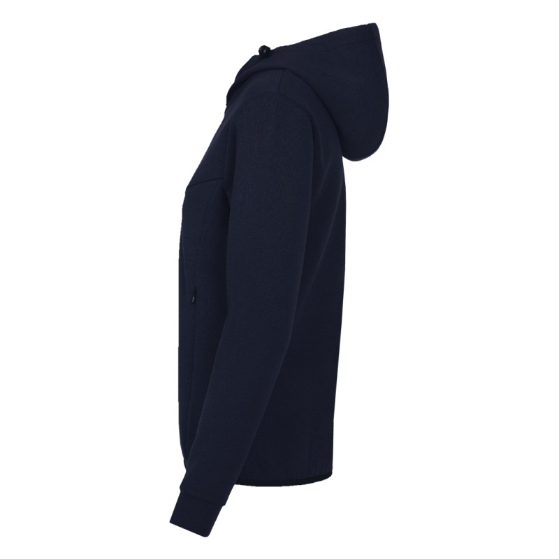 Izrađena je od mešavine poliestera, recikliranog poliestera, viskoze i elastina, gramature 300 g/m². Materijal pruža elastičnost, mekoću i stabilnost, sa prijatnim osećajem pri nošenju i dobrim zadržavanjem oblika. Udeo recikliranog poliestera doprinosi održivijem sastavu materijala bez kompromisa u performansama. Model ima podesivu kapuljaču, dva diskretno integrisana prednja džepa sa skrivenim otvaranjem, kao i elastične paspule na rukavima i dnu. Konstrukcija je kompaktna i pogodna za samostalno nošenje ili kombinovanje u slojevima. Model je dostupan i u muškoj verziji.