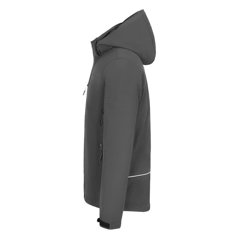 Softshell jakna TROOPER namenjena je radu na otvorenom i outdoor aktivnostima u hladnim i zahtevnim vremenskim uslovima. Izrađena je od troslojne laminirane tkanine (95% poliester / 5% elastin) sa integrisanom TPU membranom, koja obezbeđuje vodonepropusnost do 8.000 mm i visoku paropropusnost od 3.000 g/m2/24 h. Ovakva konstrukcija pruža pouzdanu zaštitu od vetra i vlage uz očuvanu udobnost i prozračnost tokom intenzivnog rada. Unutrašnji sloj od mikropolara doprinosi dodatnoj toplotnoj izolaciji, dok postavljena i štepana kapuljača sa tri panela pruža sigurnu zaštitu u zimskim uslovima. Kapuljača je skidiva i podesiva pomoću elastičnih učkura i regulatora, a visoka kragna dodatno štiti vrat. Model je opremljen sa četiri spoljašnja džepa sa rajsferšlusom (dva bočna, jedan na grudima i jedan na rukavu), kao i sa dva unutrašnja džepa sa drukerima, što omogućava praktično i bezbedno odlaganje opreme. Diskretan reflektivni detalj na leđima povećava vidljivost, dok skriveni rajsferšlusi omogućavaju lak pristup za štampu ili vez, čineći jaknu pogodnom za timsku i profesionalnu personalizaciju. Ključne karakteristike: Troslojna laminirana softshell tkanina • TPU membrana • Vodonepropusnost 8.000 mm • Paropropusnost 3.000 g/m2/24 h • Spoljašnji sloj 95% poliester / 5% elastin • Unutrašnji sloj mikropolar • Skidiva, štepana kapuljača (3 panela) • Visoka kragna • 4 spoljašnja džepa sa rajsferšlusom • 2 unutrašnja džepa sa drukerima • Podešavanje rukava čičak-trakom • Reflektivni detalj na leđima • Rajsferšlusi za lak pristup personalizaciji • Unisex kroj • OEKO-TEX® sertifikat