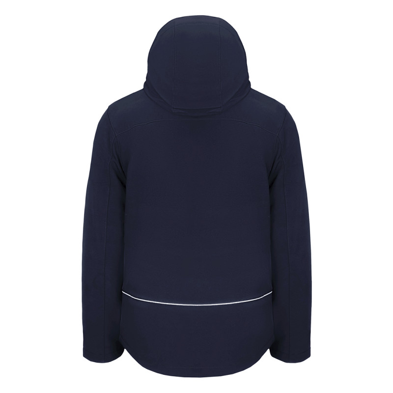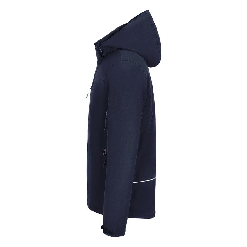 Softshell jakna TROOPER namenjena je radu na otvorenom i outdoor aktivnostima u hladnim i zahtevnim vremenskim uslovima. Izrađena je od troslojne laminirane tkanine (95% poliester / 5% elastin) sa integrisanom TPU membranom, koja obezbeđuje vodonepropusnost do 8.000 mm i visoku paropropusnost od 3.000 g/m2/24 h. Ovakva konstrukcija pruža pouzdanu zaštitu od vetra i vlage uz očuvanu udobnost i prozračnost tokom intenzivnog rada. Unutrašnji sloj od mikropolara doprinosi dodatnoj toplotnoj izolaciji, dok postavljena i štepana kapuljača sa tri panela pruža sigurnu zaštitu u zimskim uslovima. Kapuljača je skidiva i podesiva pomoću elastičnih učkura i regulatora, a visoka kragna dodatno štiti vrat. Model je opremljen sa četiri spoljašnja džepa sa rajsferšlusom (dva bočna, jedan na grudima i jedan na rukavu), kao i sa dva unutrašnja džepa sa drukerima, što omogućava praktično i bezbedno odlaganje opreme. Diskretan reflektivni detalj na leđima povećava vidljivost, dok skriveni rajsferšlusi omogućavaju lak pristup za štampu ili vez, čineći jaknu pogodnom za timsku i profesionalnu personalizaciju. Ključne karakteristike: Troslojna laminirana softshell tkanina • TPU membrana • Vodonepropusnost 8.000 mm • Paropropusnost 3.000 g/m2/24 h • Spoljašnji sloj 95% poliester / 5% elastin • Unutrašnji sloj mikropolar • Skidiva, štepana kapuljača (3 panela) • Visoka kragna • 4 spoljašnja džepa sa rajsferšlusom • 2 unutrašnja džepa sa drukerima • Podešavanje rukava čičak-trakom • Reflektivni detalj na leđima • Rajsferšlusi za lak pristup personalizaciji • Unisex kroj • OEKO-TEX® sertifikat