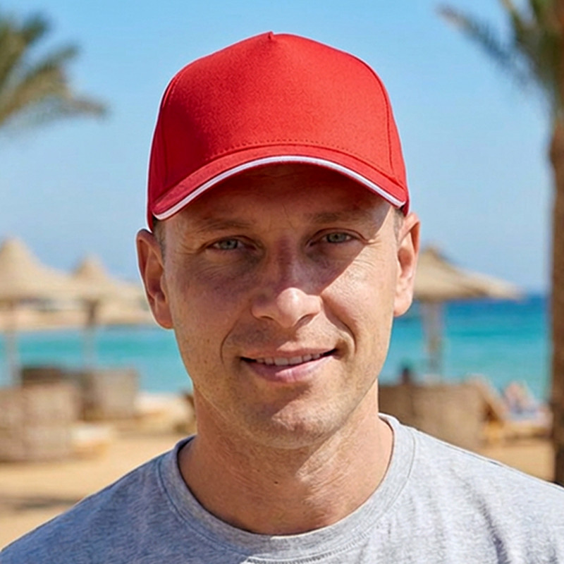Kačket • Materijal: 100% pamuk • Keper • Sendvič panel • Obim: 58 cm • Sistem podešavanja obima sa čičak kopčom • Ventilacioni otvori • Dugme u boji kačketa • Veliki prostor za štampu