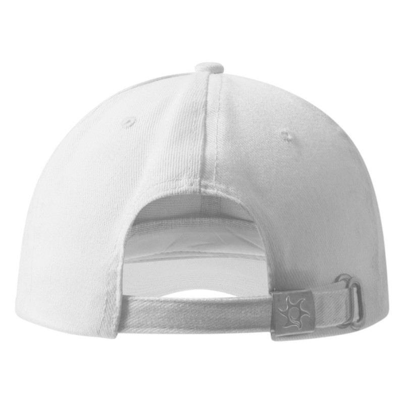 Sistem podešavanja obima je sa metalnom kopčom, što omogućava pouzdano i dugotrajno prilagođavanje. Ventilacioni otvori doprinose boljoj prozračnosti, dok dugme u boji kačketa upotpunjuje funkcionalan i neutralan dizajn.