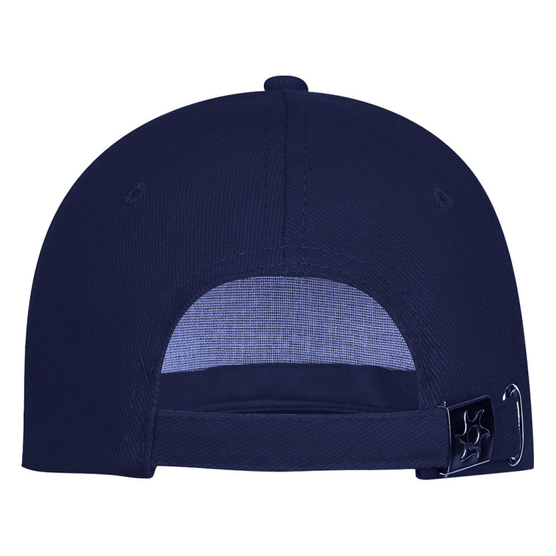 Sistem podešavanja obima je sa metalnom kopčom, što omogućava pouzdano i dugotrajno prilagođavanje. Ventilacioni otvori doprinose boljoj prozračnosti, a dugme u boji kačketa upotpunjuje funkcionalan i neutralan dizajn.