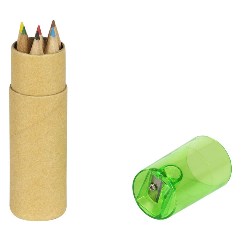Set drvenih bojica sa integrisanim zarezačem, praktičan za školu, kreativne radionice i promotivne kampanje. Bojice su upakovane u kraft kartonsko pakovanje cilindričnog (valjkastog) oblika, dok se u poklopcu nalazi ugrađen zarezač. Kompaktno i funkcionalno rešenje za crtanje i bojenje u pokretu. Ključne karakteristike: Set od 6 drvenih bojica • Kraft kartonsko pakovanje u obliku valjka • Integrisan zarezač u poklopcu • Kompaktno i praktično pakovanje • Pogodno za školu i promotivne aktivnosti