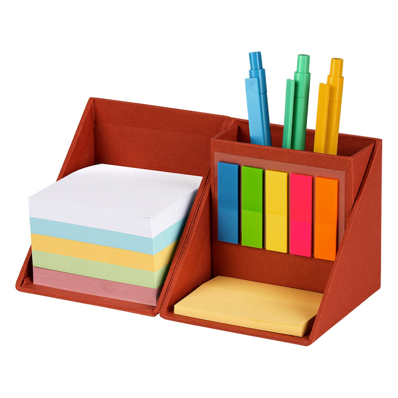 Set za beleške u obliku kocke, dizajniran kao praktičan stoni organizator i funkcionalan notes za svakodnevnu upotrebu u kancelariji, školi ili kod kuće. Kućište je izrađeno od kvalitetnog kartona, dok unutrašnjost sadrži veliki broj listova i samolepljivih obeleživača za lakšu organizaciju informacija. Može se koristiti i kao držač za olovke i sitnice. Ekološki proizvod, uz odličan odnos cene i kvaliteta, predstavlja jedan od najtraženijih promotivnih setova. Ključne karakteristike: Set za beleške • Notes u obliku kocke • 500 listova u 5 različitih boja (100 po boji) • 100 samolepljivih obeleživača (20 po boji) • 50 žutih samolepljivih papirića • Kućište od kartona • Može se koristiti kao držač za olovke i sitnice • Ekološki proizvod • Odličan odnos cene i kvaliteta