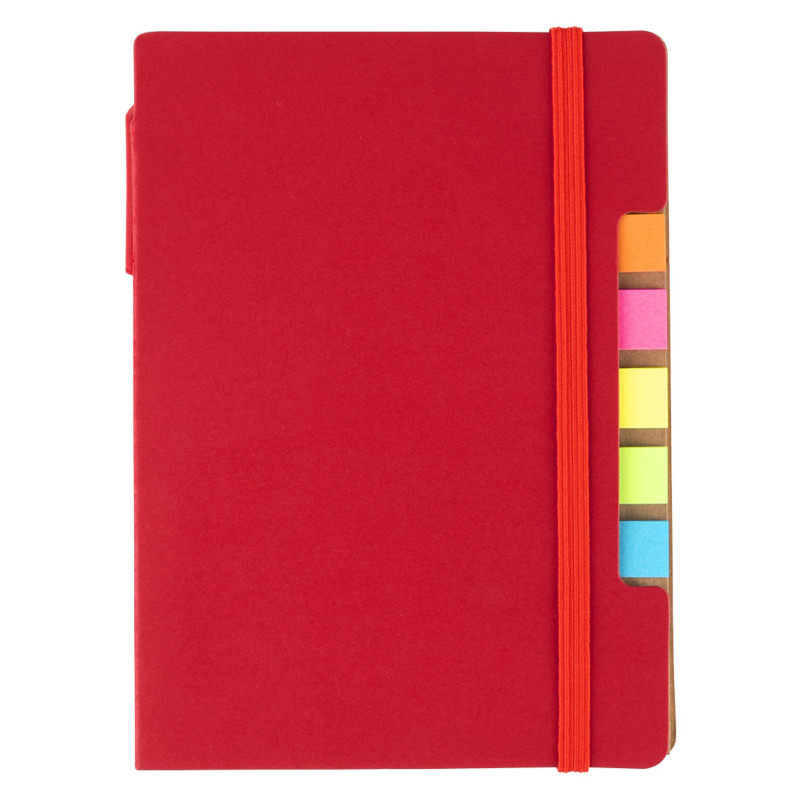 Funkcionalan set za beleške namenjen organizaciji obaveza u školi, kancelariji ili svakodnevnoj upotrebi. Sadrži 70 listova sa linijama, samolepljive papiriće u više boja i hemijsku olovku sa recikliranim delovima i plavim mastilom. Dodatni džep na unutrašnjoj strani korice omogućava praktično odlaganje sitnih dokumenata, dok elastična traka obezbeđuje sigurno zatvaranje. Dostupan u 7 boja, pogodan i za promotivne kampanje. Ključne karakteristike: Set za beleške • 70 listova sa linijama • 100 samolepljivih papirića (20 po boji) • Boje: roze, narandžasta, žuta, zelena, plava • Hemijska olovka sa recikliranim delovima sa plavim mastilom • Unutrašnji džep u korici • Elastična traka za zatvaranje • Dostupan u 7 boja