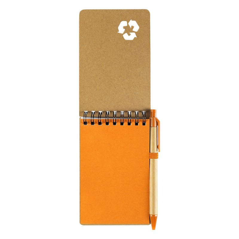 Praktičan i ekološki prihvatljiv džepni notes, idealan za zapisivanje ideja, beleški i obaveza u pokretu. Sadrži 60 stranica, dok je prva stranica u boji usklađenoj sa plastičnim delovima olovke, što doprinosi prepoznatljivom izgledu. Uz notes dolazi hemijska olovka sa recikliranim delovima sa plavim mastilom. Metalna spiralna žica i elastična traka obezbeđuju dodatnu čvrstinu i praktičnost. Dostupan u više živopisnih boja. Ključne karakteristike: Džepni notes • 60 stranica • Prva stranica u boji usklađenoj sa olovkom • Hemijska olovka sa recikliranim delovima sa plavim mastilom • Metalna spiralna žica • Elastična traka • Kompaktan i praktičan • Ekološki koncept • Dostupan u više boja