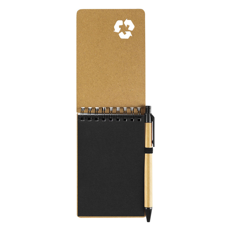 Praktičan i ekološki prihvatljiv džepni notes, idealan za zapisivanje ideja, beleški i obaveza u pokretu. Sadrži 60 stranica, dok je prva stranica u boji usklađenoj sa plastičnim delovima olovke, što doprinosi prepoznatljivom izgledu. Uz notes dolazi hemijska olovka sa recikliranim delovima sa plavim mastilom. Metalna spiralna žica i elastična traka obezbeđuju dodatnu čvrstinu i praktičnost. Dostupan u više živopisnih boja. Ključne karakteristike: Džepni notes • 60 stranica • Prva stranica u boji usklađenoj sa olovkom • Hemijska olovka sa recikliranim delovima sa plavim mastilom • Metalna spiralna žica • Elastična traka • Kompaktan i praktičan • Ekološki koncept • Dostupan u više boja