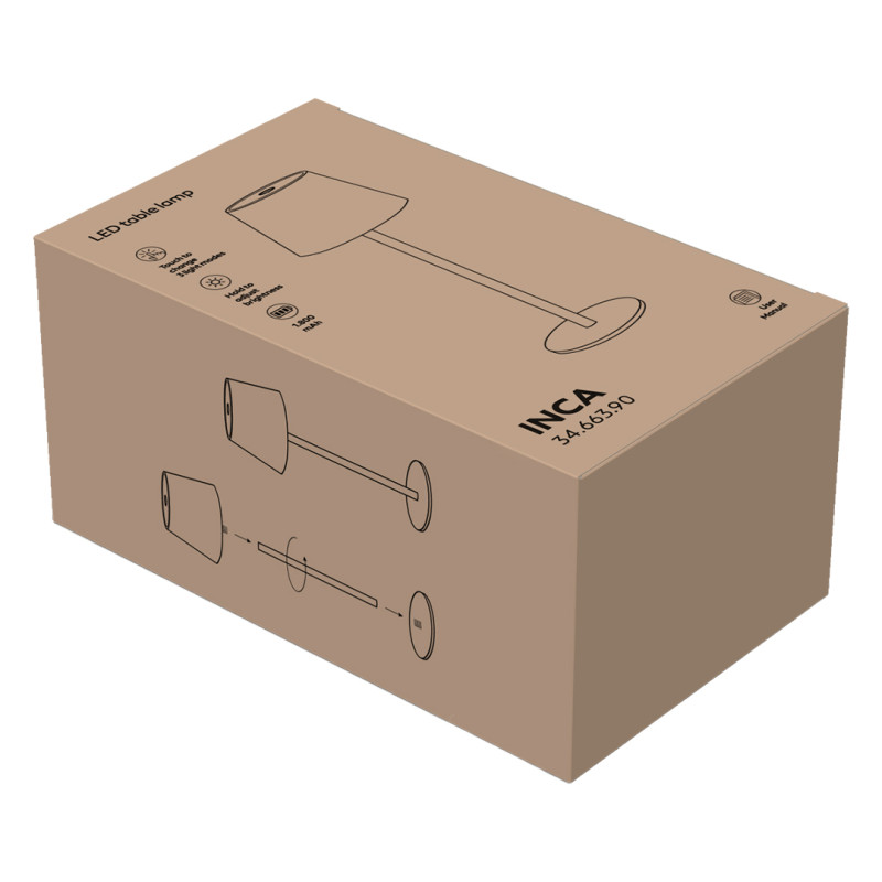 LED stona lampa sa integrisanom baterijom, pogodna za promotivnu upotrebu, ugostiteljske objekte i poslovne prostore. Minimalistički metalni dizajn lako se uklapa u enterijere hotela, restorana, kafića, recepcija i konferencijskih prostora, kao i na radne i noćne stolove. Lampa je pakovana iz delova, što omogućava kompaktno pakovanje i lako brendiranje. Bežično korišćenje, upravljanje na dodir i mogućnost prilagođavanja boje i jačine svetla omogućavaju jednostavno kreiranje prijatnog ambijenta u različitim okruženjima. Isporučuje se u poklon kutiji sa uključenim kablom za punjenje. Ključne karakteristike: LED stona lampa • Materijal: metal • Pakovana iz delova • Punjiva Li-ion baterija kapaciteta 1800 mAh • Upravljanje na dodir (touch funkcija) • Tri režima boje svetla: toplo bela, prirodno bela, hladno bela • Četiri nivoa jačine osvetljenja po režimu (dim funkcija) • Type-C port za punjenje • Kabl za punjenje uključen • Vreme punjenja oko 4 sata • Vreme rada od 5 do 10 sati u zavisnosti od režima osvetljenja • Poklon kutija