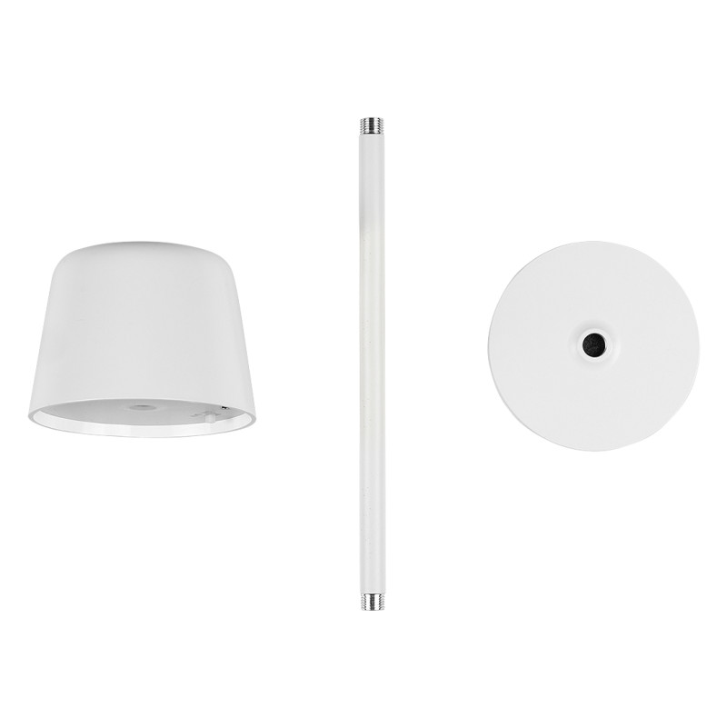 LED stona lampa • Materijal: metal i plastika • Pakovana iz delova • Punjiva Li-ion baterija kapaciteta 1800 mAh • Upravljanje na dodir • Tri režima boje svetla (toplo bela, prirodno bela, hladno bela) • Četiri nivoa jačine osvetljenja po režimu (dim funkcija) • Type-C port za punjenje • Vreme punjenja oko 4 sata • Vreme rada 5–10 sati • Kabl za punjenje uključen • Poklon kutija