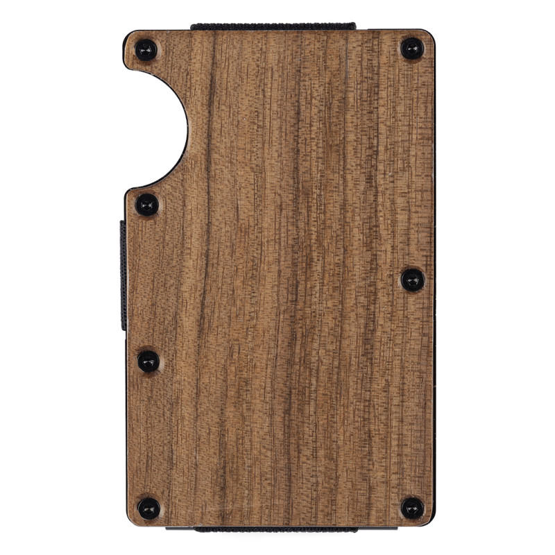 Držač kartica • RFID zaštita • Aluminijumski okvir sa mat završnom obradom • Drveno telo • Kapacitet do 5 kartica • Metalni klip za gotovinu ili kačenje • Kompaktan dizajn