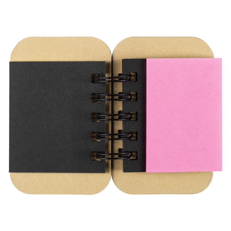 Set za beleške • Spiralni povez • Tvrde korice od recikliranog kartona • 100 većih samolepljivih papirića u 4 jarke boje • 125 mini samolepljivih papirića u 5 jarkih boja • Funkcionalno rešenje za organizaciju