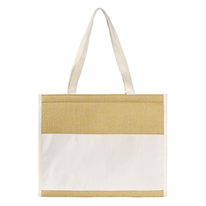Materijalpoliester sa teksturom jute • Termo izolacija od aluminijumske pene • Zatvaranje čičak trakom • Veliki prednji džep od pamuka za štampu • Ručke od pamučne trake • Kontrastni paspul u prirodnoj boji • Pogodna za rashladne uloške • “Natural eco” promotivni izgled Materijal: mešavina pamuka i poliestera sa aluminijumskom penom