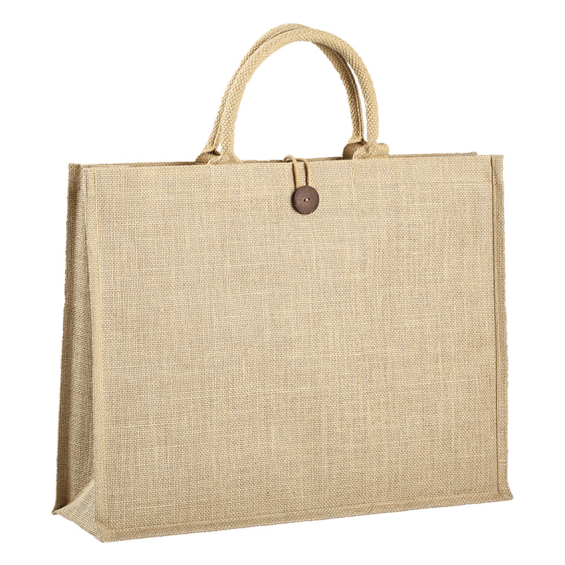 Torba od jute • Kratke ručke • Zatvaranje drvenim dugmetom • Prirodan eco izgled • Pogodna za sajmove, retail i letnje kampanje • OEKO-TEX sertifikat • FAIRTRADE sertifikat