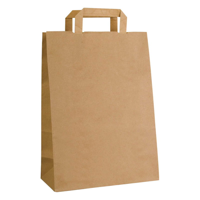 Materijalnatron (kraft) papir • Gramatura: 80 g/m2 • Ravne papirne ručke • Ručke lepljene sa unutrašnje strane • Lagana i praktična • Pogodna za prodavnice, prehranu i markete • Prirodan neutralan izgled • Pogodna za štampu i brendiranje Materijal: kraft papir