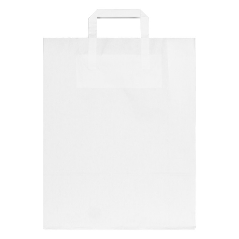 Materijalnatron (kraft) papir • Gramatura: 80 g/m2 • Ravne papirne ručke • Ručke lepljene sa unutrašnje strane • Lagana i praktična konstrukcija • Pogodna za prodavnice, markete i prehrambenu industriju • Neutralan prirodan izgled • Velika površina za štampu Materijal: kraft papir