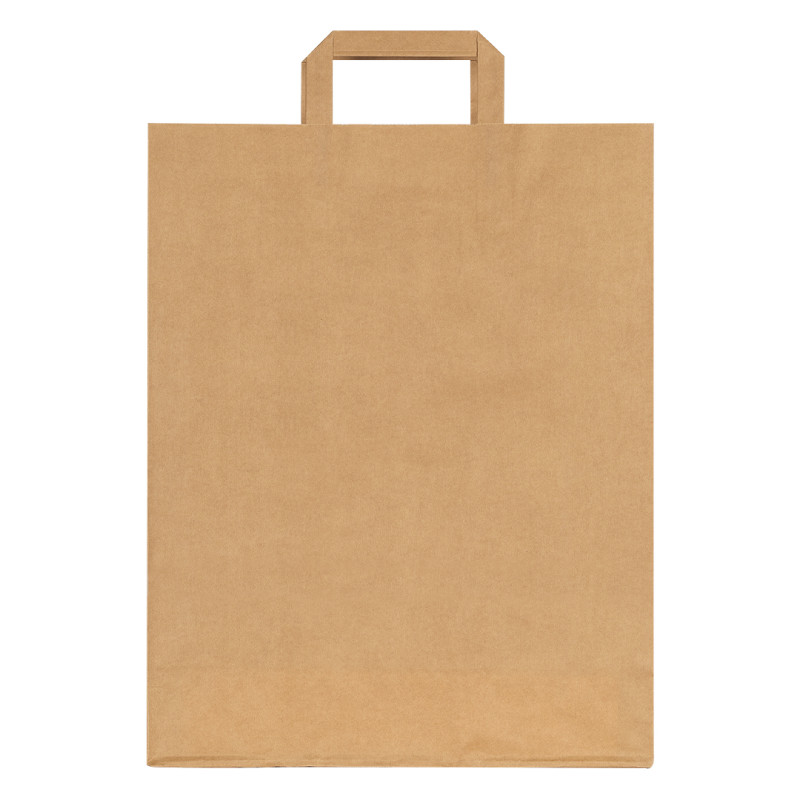 Papirna kesa za svakodnevnu upotrebu • Materijal: natron (kraft) papir • Gramatura: 80 g/m2 • Ravne papirne ručke • Ručke lepljene sa unutrašnje strane • Lagana i praktična konstrukcija • Pogodna za prodavnice, markete i prehrambenu industriju • Neutralan prirodan izgled • Velika površina za štampu