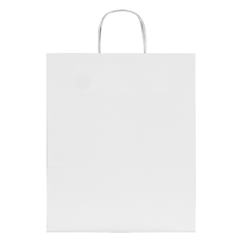 Papirna poklon kesa • Materijal: beli kraft papir 110 g/m2 • Ravno sečen gornji rub • Pletene papirne ručke • Ojačano dno cik-cak preklopom • Pogodna za promocije, retail i poklon pakovanja • Papir iz odgovornih izvora