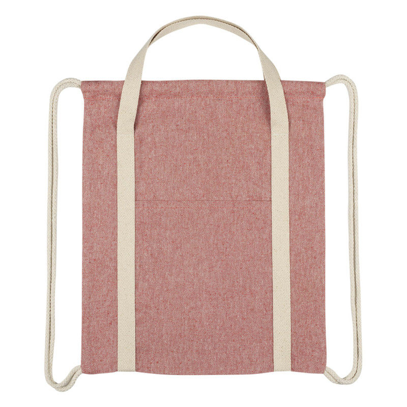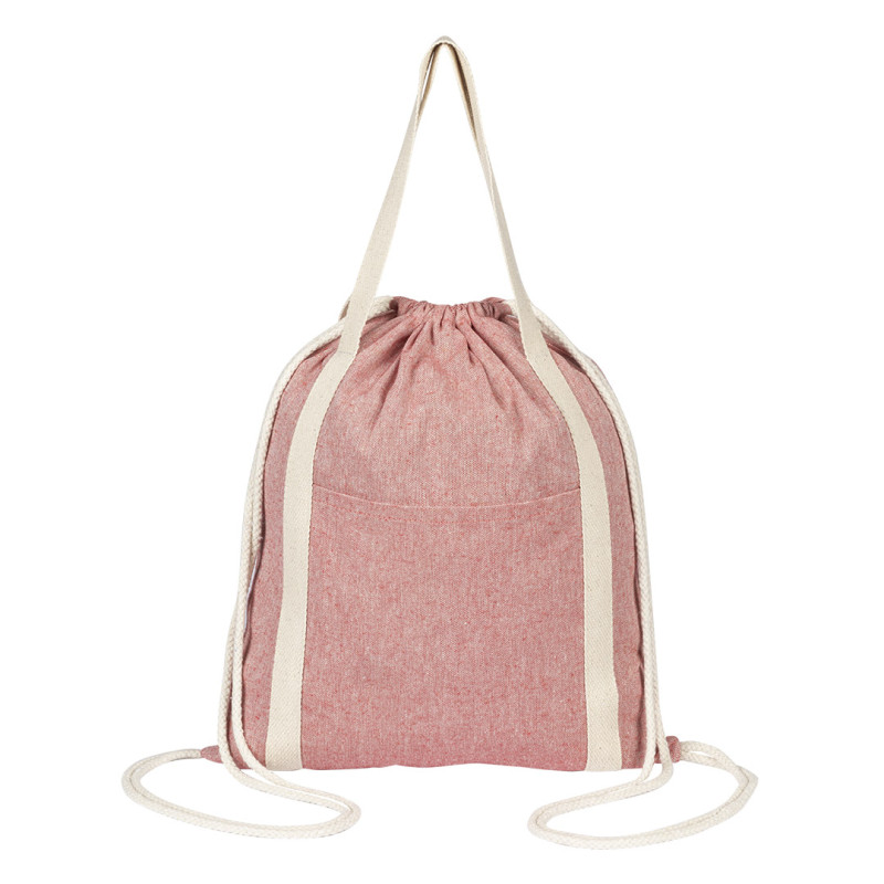ZORA je sportski ranac izrađen od recikliranih materijala sa prepoznatljivim meliranim izgledom, namenjen promotivnoj i svakodnevnoj upotrebi. Dizajn kombinuje moderan, strukturirani izgled sa praktičnim detaljima kao što su prednji džep i dodatne ručke za nošenje u ruci, što ga čini funkcionalnim izborom za različite prilike. Izrađen je od mešavine 80% recikliranog pamuka i 20% recikliranog poliestera, gramature 200 g/m2, sa bočnim šavovima i standardnom veličinom pogodnom za svakodnevno korišćenje. Pamučni učkuri omogućavaju nošenje na leđima, dok prednji džep pruža dodatni prostor i odličnu površinu za brendiranje. Eco koncept je dodatno naglašen kraft hang tag etiketom i vezenom pamučnom etiketom. Ključne karakteristike: Sportski ranac sa učkurima • Sirovinski sastav: 80% reciklirani pamuk, 20% reciklirani poliester • Gramatura: 200 g/m2 • Melirani strukturirani izgled • Prednji džep pogodan za brendiranje • Kratke ručke za nošenje u ruci • Standardna veličina • Bočni šavovi • Kraft hang tag etiketa • Vezena eco etiketa • GRS sertifikat • OEKO-TEX sertifikat • FAIRTRADE sertifikat