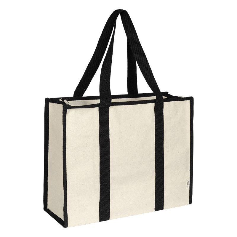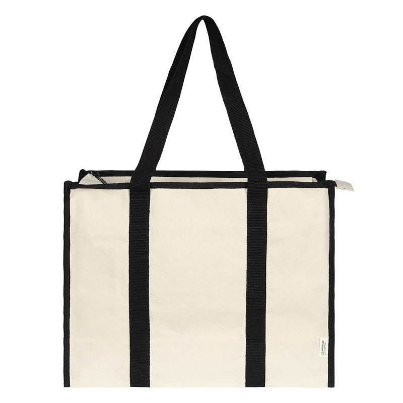 Materijal80% reciklirani pamuk, 20% reciklirani poliester • Gramatura: 450 g/m2 • Ojačana konstrukcija za veća opterećenja • Ručke prošivene oko celog tela torbe • Kontrastni detalji za moderan izgled • Zatvaranje rajsferšlusom • Unutrašnji džep • Pogodna za premium događaje i promotivne kampanje • GRS sertifikat • OEKO-TEX sertifikat • FAIRTRADE sertifik Materijal: reciklirani pamuk i reciklirani poliester