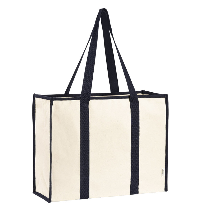 80% reciklirani pamuk, 20% reciklirani poliester • Gramatura: 450 g/m2 • Ojačana konstrukcija za veća opterećenja • Ručke prošivene oko celog tela torbe • Kontrastni detalji za moderan izgled • Zatvaranje rajsferšlusom • Unutrašnji džep • Pogodna za premium događaje i promotivne kampanje • GRS sertifikat • OEKO-TEX sertifikat • FAIRTRADE sertifik Materijal: reciklirani pamuk i reciklirani poliester