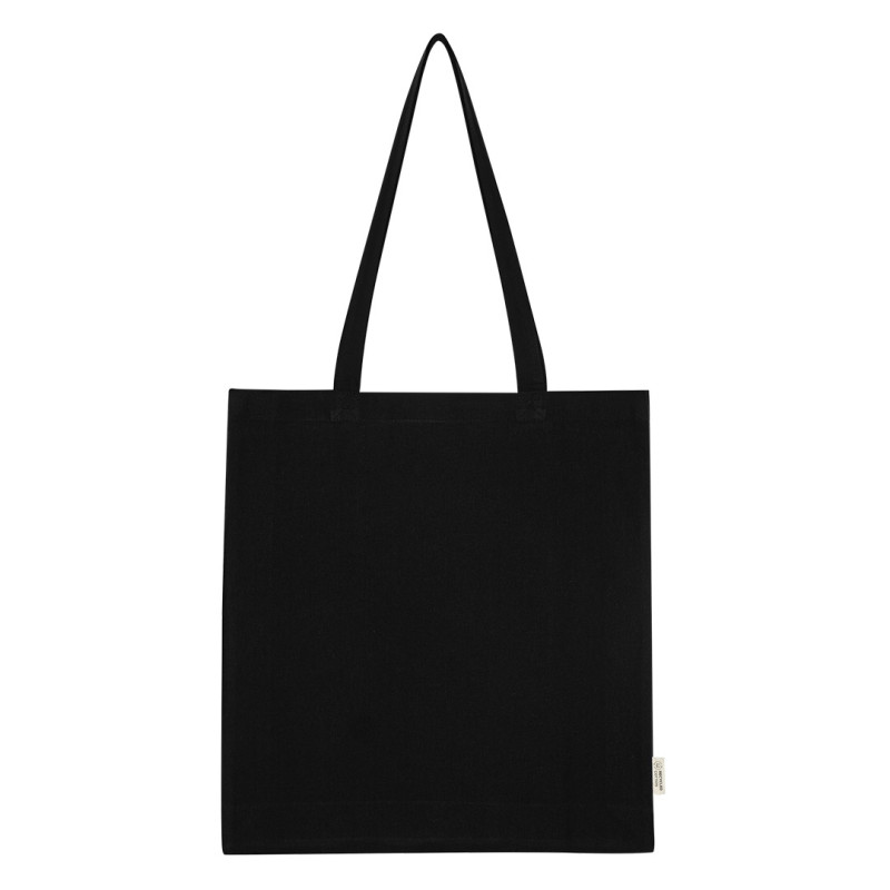 Materijal80% reciklirani pamuk, 20% reciklirani poliester • Gramatura: 220 g/m2 • Čvršća i pouzdanija konstrukcija • Stabilna površina pogodna za štampu • Duge ručke za nošenje na ramenu • Pogodna za promotivne kampanje i svakodnevnu upotrebu • GRS sertifikat • OEKO-TEX sertifikat • FAIRTRADE sertifikat Materijal: reciklirani pamuk i reciklirani poliester