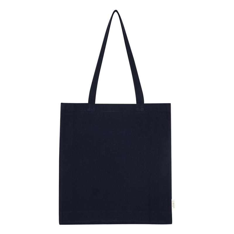 Reciklirana pamučna torba • Sirovinski sastav: 80% reciklirani pamuk, 20% reciklirani poliester • Gramatura: 220 g/m2 • Čvršća i pouzdanija konstrukcija • Stabilna površina pogodna za štampu • Duge ručke za nošenje na ramenu • Pogodna za promotivne kampanje i svakodnevnu upotrebu • GRS sertifikat • OEKO-TEX sertifikat • FAIRTRADE sertifikat