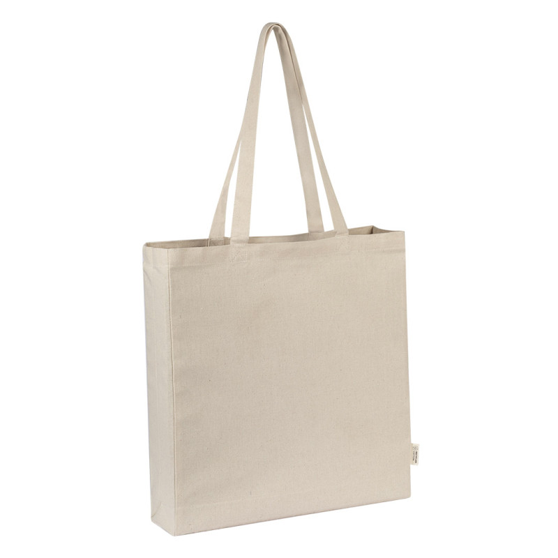 Materijal80% reciklirani pamuk, 20% reciklirani poliester • Gramatura: 220 g/m2 • Čvršća i pouzdanija konstrukcija • Stabilna površina pogodna za štampu • Duge ručke za nošenje na ramenu • Pogodna za promotivne kampanje i svakodnevnu upotrebu • GRS sertifikat • OEKO-TEX sertifikat • FAIRTRADE sertifikat Materijal: reciklirani pamuk i reciklirani poliester
