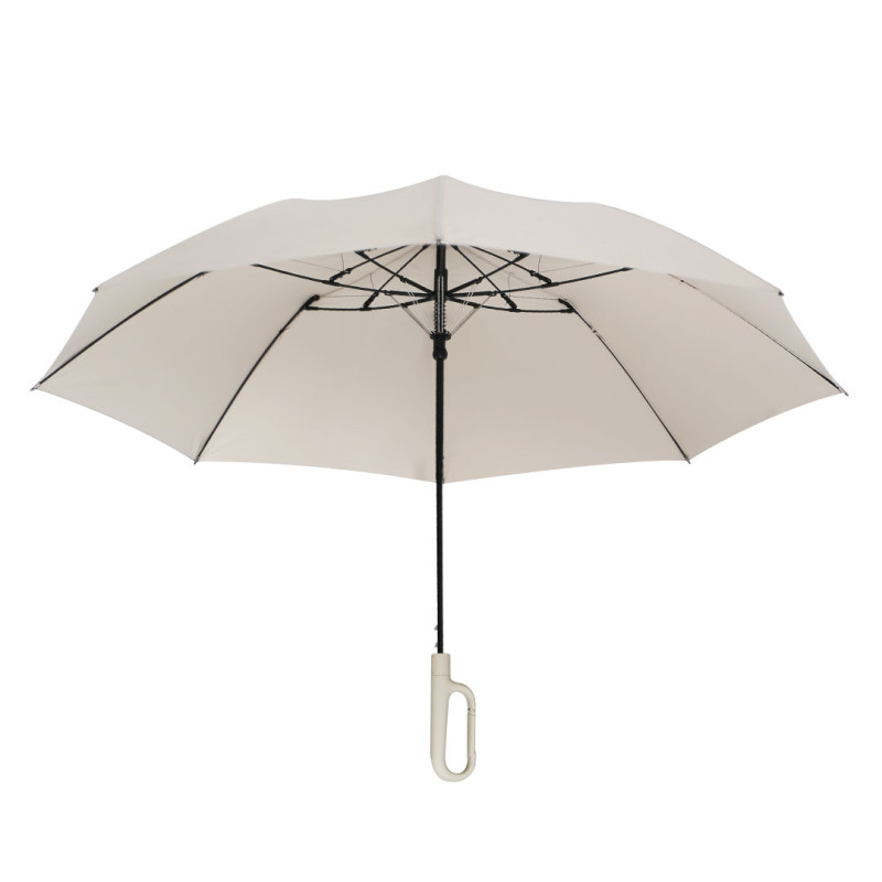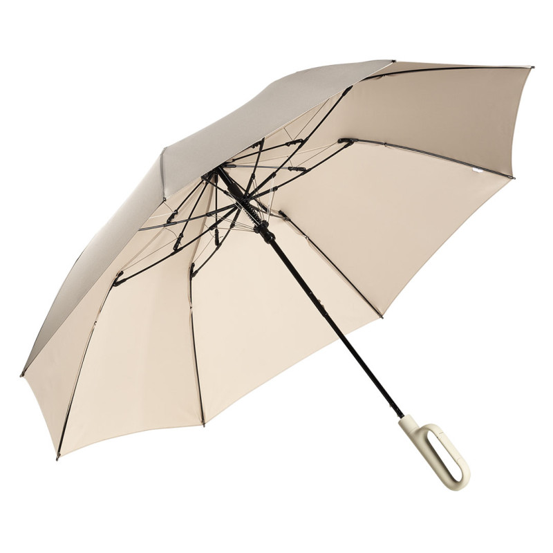 Sklopivi kišobran sa automatskim otvaranjem • Vetrootporni kišobran • 23" kišobran • 8 rebara • Materijal: 300T pongee • Dvodelni metalni štap (čelik) • Ram od stakloplastike • Vodoodbojni materijal (nivo 5) • Soft touch drška sa karabinjerom • Navlaka od istog materijala • Pogodno za brendiranje
