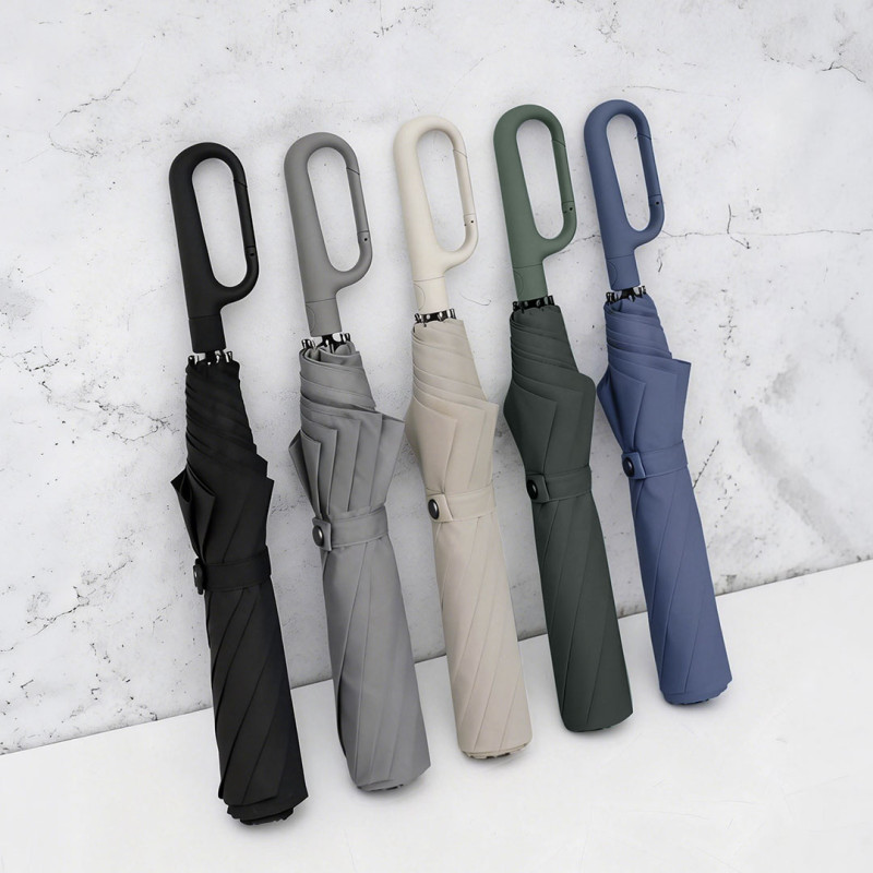 Sklopivi kišobran sa automatskim otvaranjem predstavlja pouzdan i kvalitetan promotivni proizvod namenjen poslovnoj i svakodnevnoj upotrebi. Konstrukcija sa dvodelnim čeličnim štapom i ramom od stakloplastike obezbeđuje stabilnost i dugotrajnost, dok 300T pongee materijal sa visokim stepenom vodoodbojnosti pruža efikasnu zaštitu od kiše. Poseban naglasak stavljen je na soft touch dršku sa patentiranim karabinjerom, koja omogućava praktično nošenje i lako kačenje. Zahvaljujući premium izradi i poslovno orijentisanom dizajnu, ovaj model je pogodan kao poslovni poklon i promotivni proizvod za brendiranje.