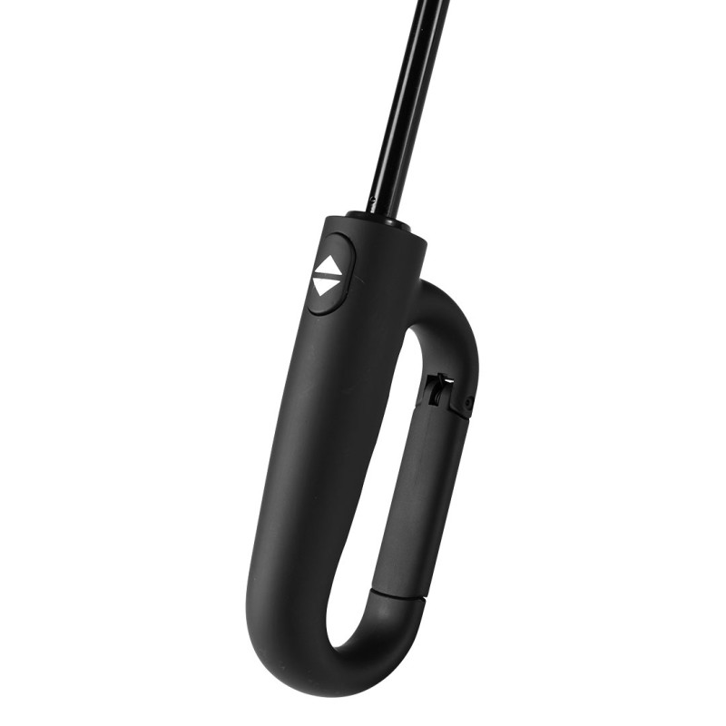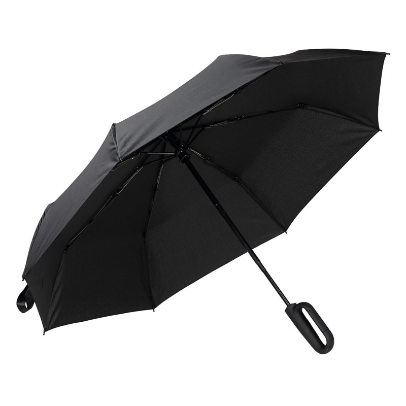 Sklopivi kišobran sa automatskim otvaranjem i zatvaranjem predstavlja praktičan promotivni proizvod namenjen svakodnevnoj upotrebi i putovanjima. Izrađen je od 190T pongee materijala, dok trodelni crni metalni štap omogućava kompaktno pakovanje i lako nošenje. Konstrukcija sa kombinacijom metalnih i FRP rebara doprinosi dobroj otpornosti na vetar. Posebnu funkcionalnost pruža plastična drška sa integrisanim karabinjerom, koja omogućava lako kačenje za torbu ili ranac, dok mekana završna obrada drške obezbeđuje udobno korišćenje. Uz priloženu navlaku od istog materijala, ovaj model je pogodan kao poslovni poklon i promotivni proizvod za brendiranje.