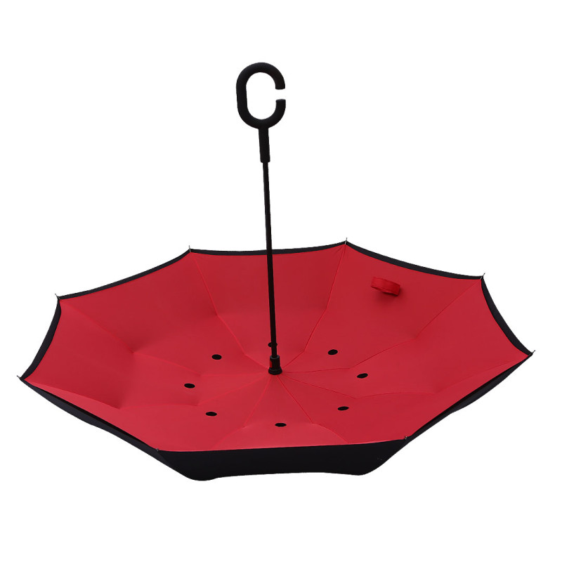 Kišobran sa obrnutim (reverse) sklapanjem predstavlja inovativan i praktičan promotivni proizvod, osmišljen za svakodnevnu upotrebu u urbanom okruženju. Ručno otvaranje u kombinaciji sa dvoslojnim 190T pongee materijalom omogućava efikasno zadržavanje vode unutar kišobrana prilikom sklapanja, čime se sprečava kvašenje poda, automobila ili odeće. Konstrukcija sa čeličnim štapom obloženim plastikom i metalnim završecima rebara obezbeđuje stabilnost i dugotrajnost. Posebno dizajnirana C-drška sa soft touch obradom omogućava nošenje bez upotrebe šaka, dok funkcija samostalnog stajanja dodatno povećava praktičnost ovog modela, čineći ga odličnim izborom za poslovne i promotivne kampanje pogodne za brendiranje. Ključne karakteristike: Kišobran sa obrnutim sklapanjem • Ručno otvaranje • 23" kišobran • 8 rebara • Dvoslojni 190T pongee materijal • Čelični štap obložen plastikom ? 12 mm • Metalni završeci rebara • Soft touch C-drška • Samostojeći dizajn • Pogodno za brendiranje