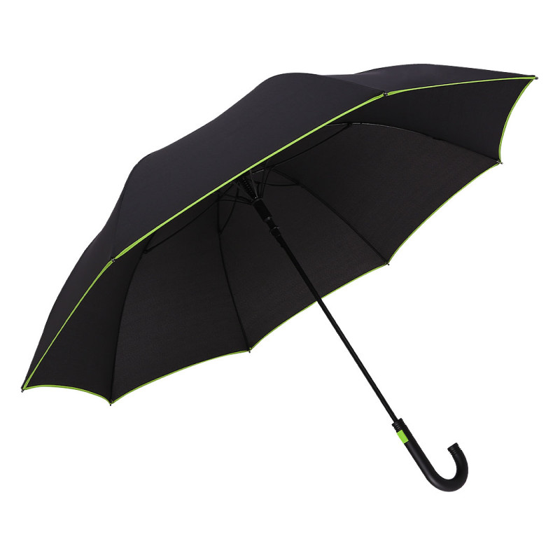 Materijal190T pongee • Dekorativni obrub • Metalni štap • Rebra od stakloplastike (FRP) • Soft touch plastična drška • Gumirana plastična kapica • Metalni završeci rebra • Dugme za otvaranje usklađeno sa bojom obruba • Pogodno za brendiranje Materijal: sirova svila