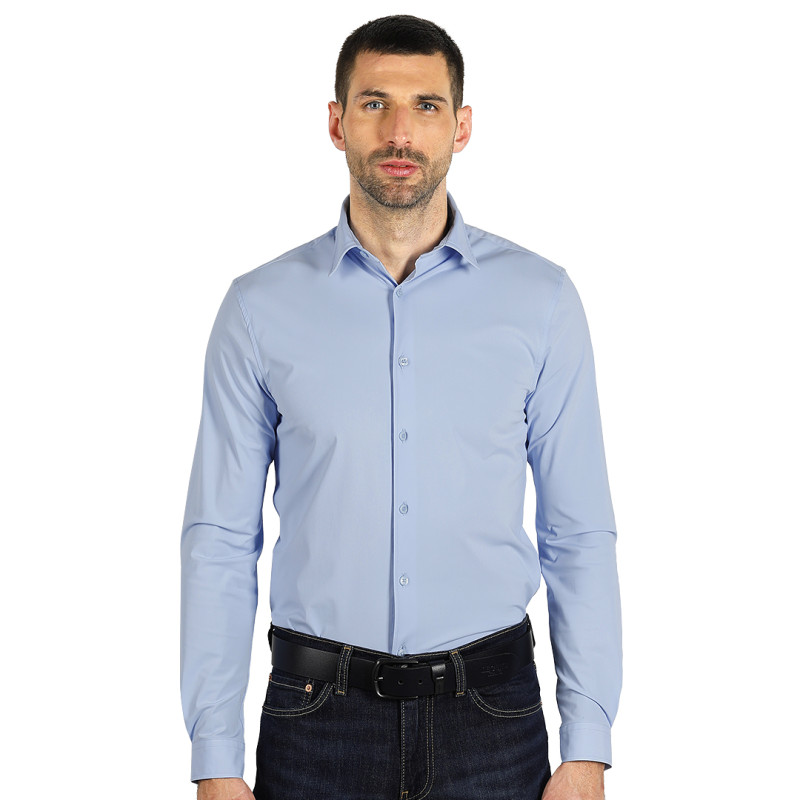 Muška košulja dugih rukava modernog slim fit kroja, izrađena od stretch single jersey tkanine (85% najlon, 15% elastin) gramature 180 g/m2. Zahvaljujući kombinaciji materijala, košulja pruža visok nivo udobnosti, elastičnosti i savremen izgled. Tkanina je rastegljiva u sva četiri pravca, što omogućava slobodu pokreta i prijatan osećaj tokom celodnevnog nošenja. Lagana i prozračna konstrukcija čini ovaj model pogodnim za poslovnu, promotivnu i svakodnevnu upotrebu. Dizajnirana je tako da se lako održava i jednostavno kombinuje uz različite stilove. Ključne karakteristike: Muška košulja dugih rukava • Slim fit kroj • Sirovinski sastav: 85% najlon, 15% elastin • Gramatura: 180 g/m2 • Stretch single jersey tkanina • Rastegljiva u sva četiri pravca • Lagana i prozračna • Moderan izgled • Pogodna za poslovnu i svakodnevnu upotrebu • Lako održavanje • Pogodna za brendiranje