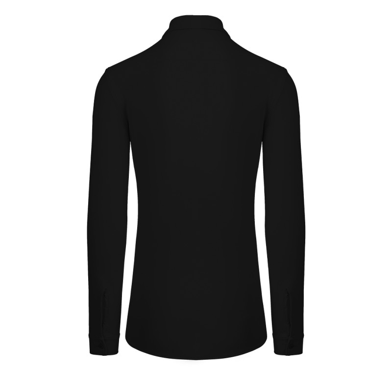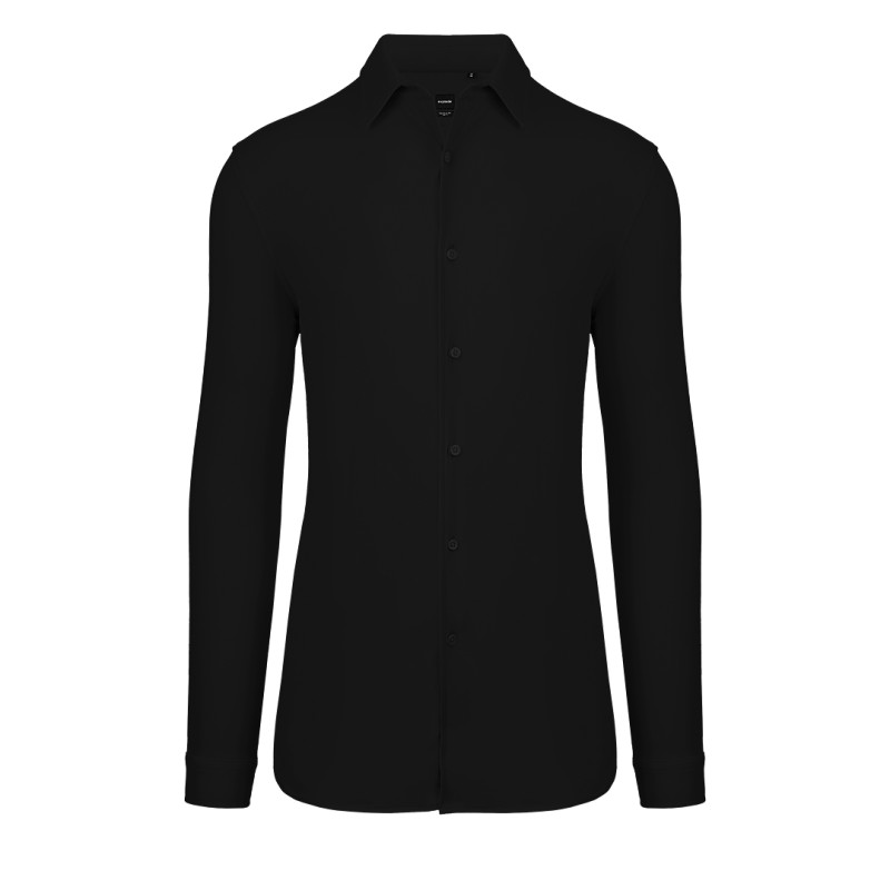 Muška košulja dugih rukava • Slim fit kroj • Sirovinski sastav: 85% najlon, 15% elastin • Gramatura: 180 g/m2 • Stretch single jersey tkanina • Rastegljiva u sva četiri pravca • Lagana i prozračna • Moderan izgled • Pogodna za poslovnu i svakodnevnu upotrebu • Lako održavanje • Pogodna za brendiranje