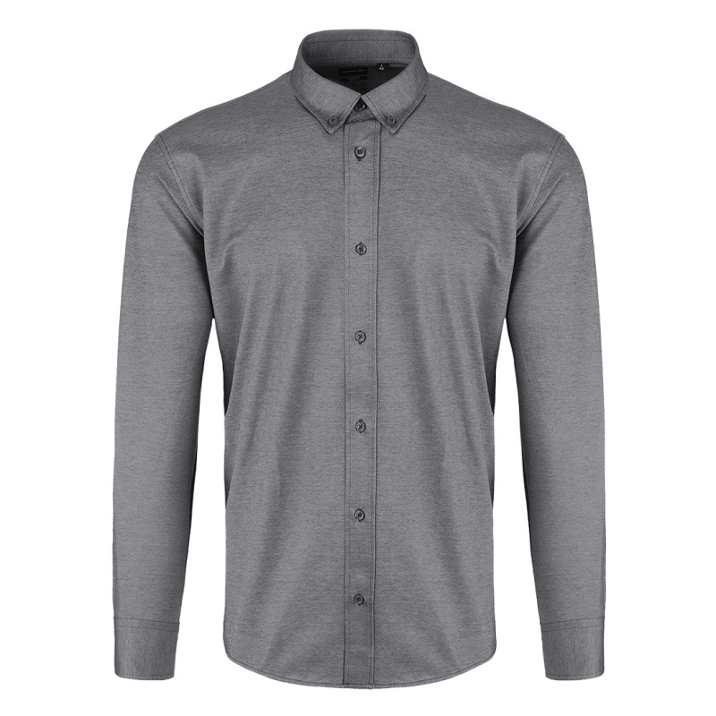 Muška košulja dugih rukava • Klasičan kroj • Sirovinski sastav: 55% pamuk, 45% COOLMAX tkanje • Gramatura: 125 g/m2 • Oxford tkanje • Rastegljiva u sva četiri pravca • Prozračna i otporna na gužvanje • Termo-dinamička svojstva • Sedam dugmadi napred • Dugmad na kragni • Manžetne sa dva dugmeta • Rezervna dugmad uključena • Dugmad u boji košulje • Regular fit • Pogodna za poslovnu upotrebu i brendiranje • Dostupna i u ženskoj verziji