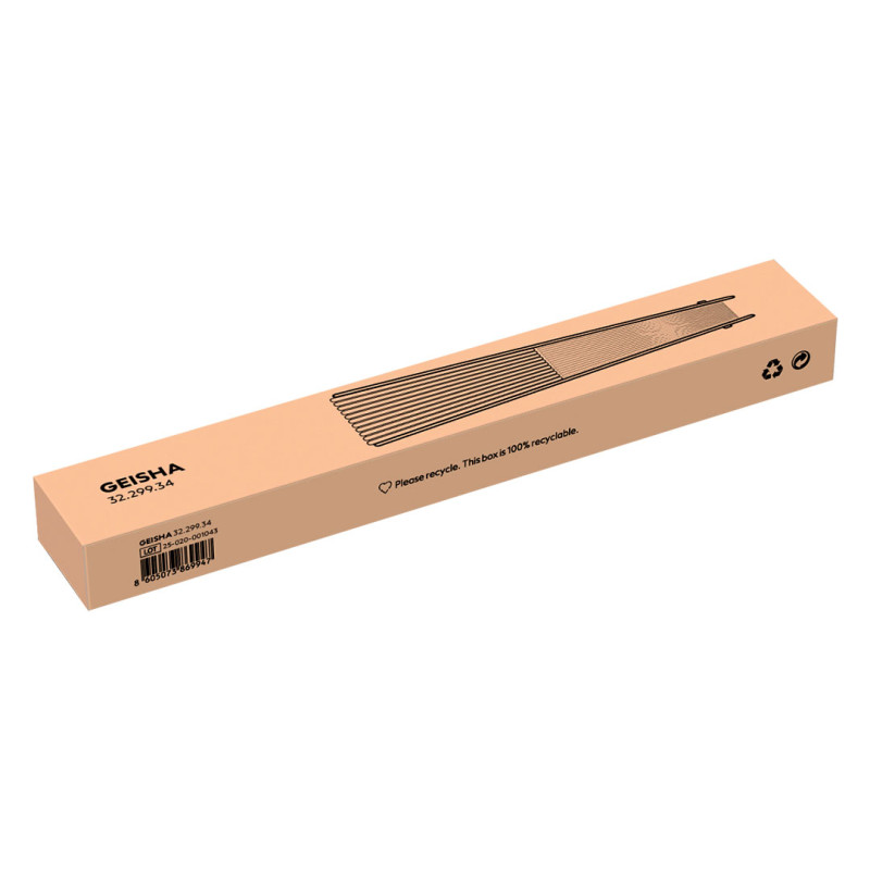 GEISHA je vodeći model u našoj kolekciji lepeza, izrađena od poliestera sa drvenom drškom koja je pogodna za lasersku gravuru - omogućavajući elegantno i trajno brendiranje. Njena široka paleta boja i sofisticirani dizajn čine je izuzetno atraktivnim promotivnim i korporativnim poklonom za letnje događaje, sajmove, team buildinge i druge aktivnosti na otvorenom. Dolazi u poklon kutiji, spremna za poklanjanje i prezentaciju brenda. Ključne karakteristike: Materijal: poliester i drvo • Poklon pakovanje