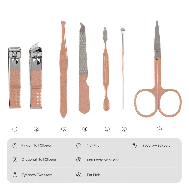 Materijal: nerđajući čelik, eko koža • Sadrži: dve grickalice, turpiju za nokte, pincetu, makazice, dva dodatna kozmetička alata