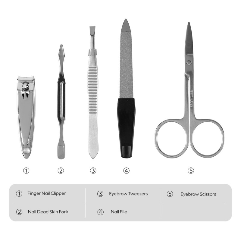 Materijaleko koža, nerđajući čelik • Sadrži: grickalicu, turpiju, pincetu, makazice, gurač za zanoktice, ogledalce