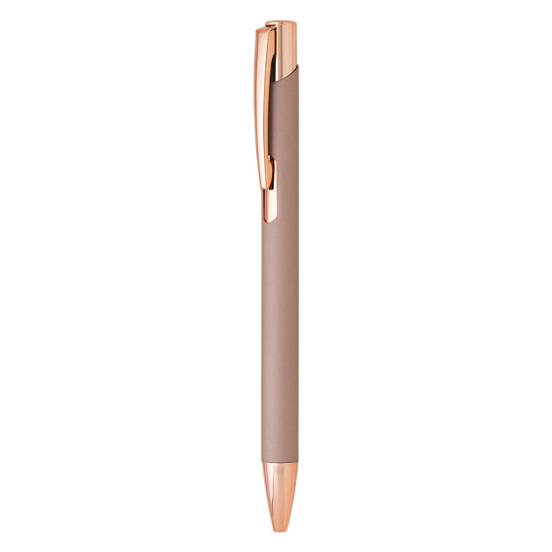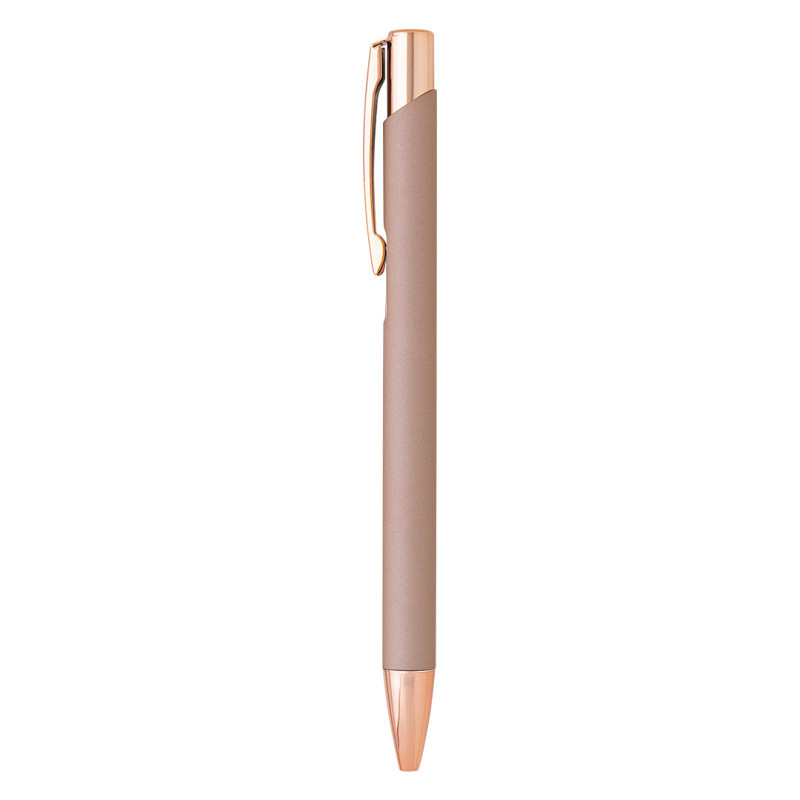 Materijalaluminijum • Soft touch telo • TC kuglica 0,7 mm • Plavo mastilo • Mat završna obrada • Sjajni detalji u boji ružičastog zlata • Široka paleta boja • Idealna za poslovnu i promotivnu upotrebu Boja mastila: plava