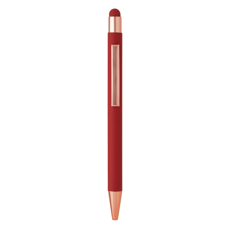 Materijalaluminijum • Soft touch telo • TC kuglica 0,7 mm • Plavo mastilo • Vrh za ekrane osetljive na dodir • Mat završna obrada • Sjajni detalji u boji ružičastog zlata • Široka paleta boja • Idealna za poslovnu i promotivnu upotrebu Boja mastila: plava