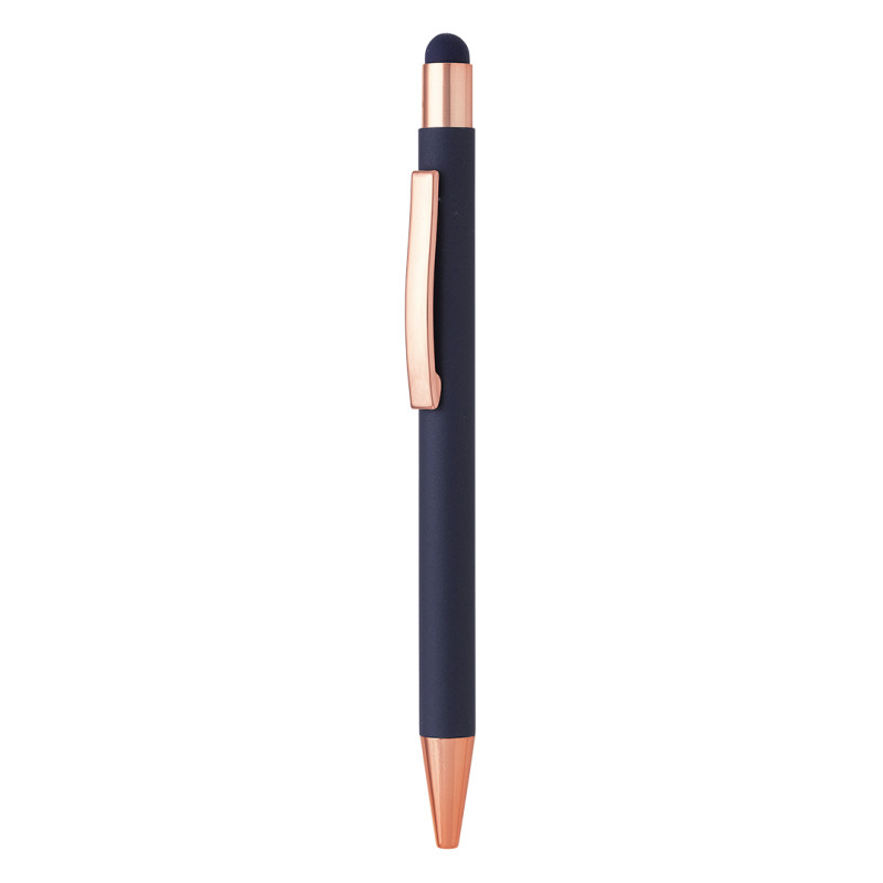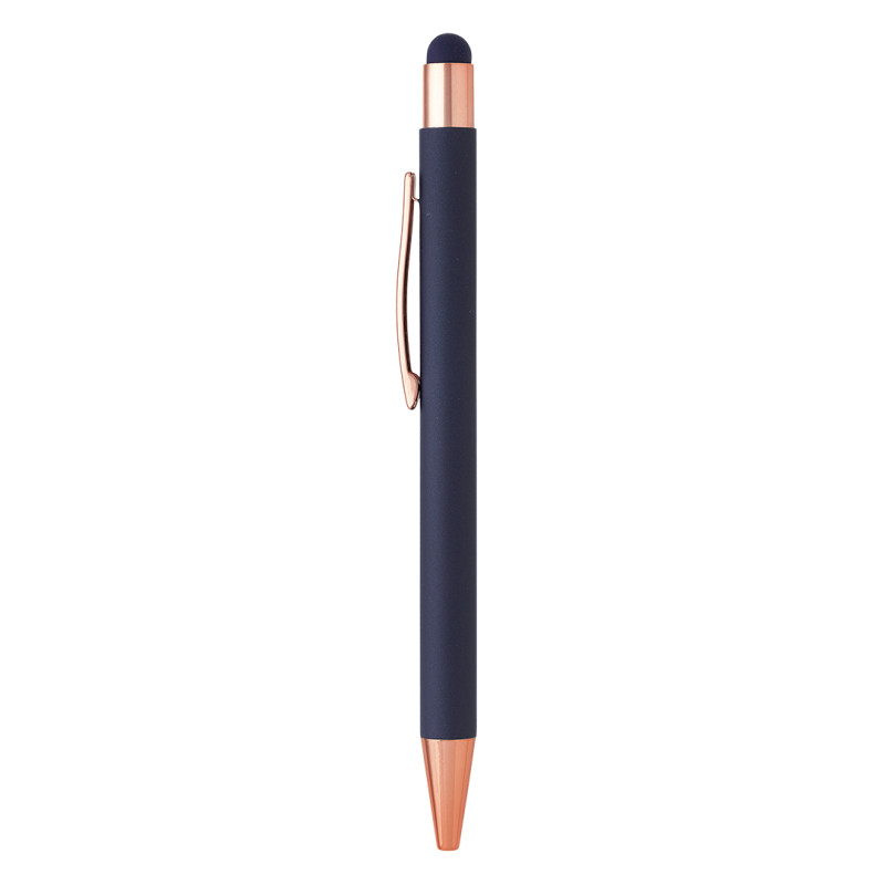 Materijalaluminijum • Soft touch telo • TC kuglica 0,7 mm • Plavo mastilo • Vrh za ekrane osetljive na dodir • Mat završna obrada • Sjajni detalji u boji ružičastog zlata • Široka paleta boja • Idealna za poslovnu i promotivnu upotrebu Boja mastila: plava