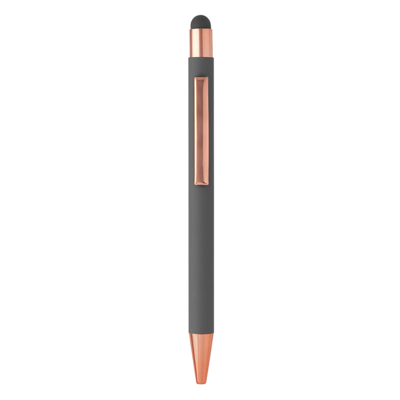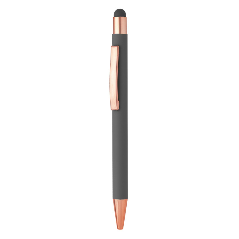 Materijalaluminijum • Soft touch telo • TC kuglica 0,7 mm • Plavo mastilo • Vrh za ekrane osetljive na dodir • Mat završna obrada • Sjajni detalji u boji ružičastog zlata • Široka paleta boja • Idealna za poslovnu i promotivnu upotrebu Boja mastila: plava