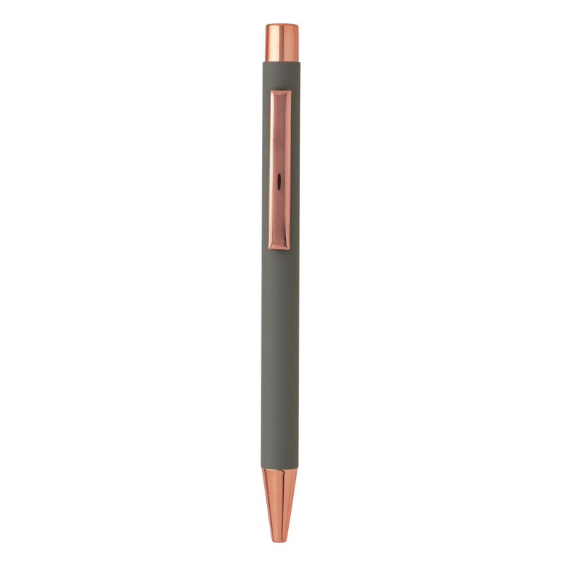 Hemijska olovka • Materijal: aluminijum • Soft touch telo • TC kuglica 0,7 mm • Plavo mastilo • Mat završna obrada • Sjajni detalji u boji ružičastog zlata • Široka paleta boja • Idealna za poslovnu i promotivnu upotrebu