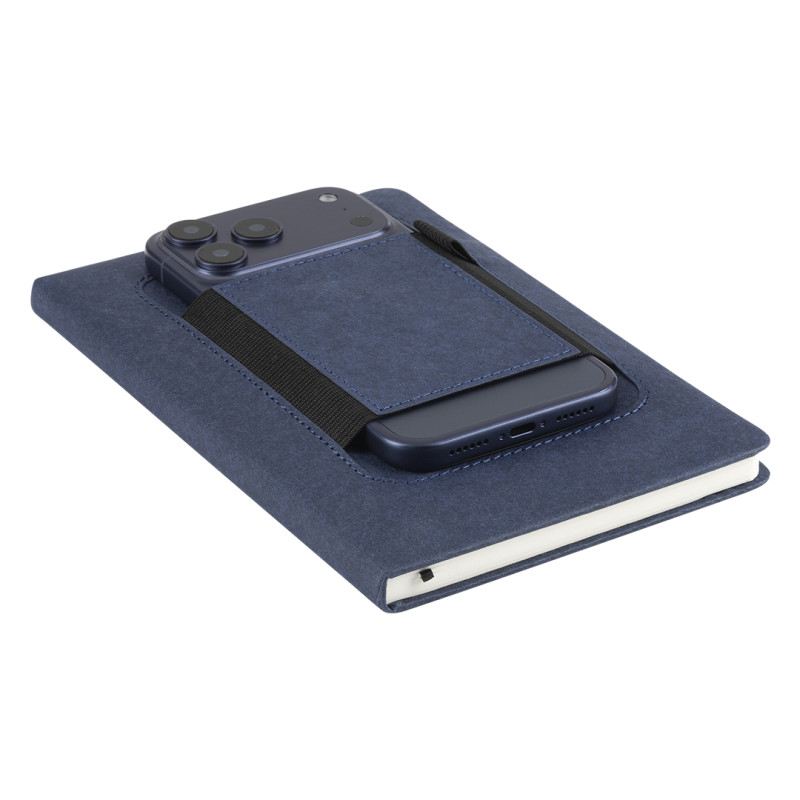 Notes formata A5 sa zaobljenim ivicama, dizajniran kao praktičan promotivni proizvod za svakodnevnu upotrebu. Opremljen je držačem za olovku i džepom za mobilni telefon na prednjoj strani korice, što ga čini funkcionalnim dodatkom za kancelariju, sastanke ili putovanja. Korica je izrađena od perivog papira (washed kraft), dok knjižni blok od recikliranog papira u linije sa krem papirom omogućava prijatno i uredno vođenje beleški. Pogodan je za brendiranje i promotivne kampanje sa naglaskom na održive materijale. Ključne karakteristike: Notes • Format A5 • 160 strana • Knjižni blok u linije • Krem papir 70 g/m² • Knjižni blok od recikliranog papira • Korica od perivog papira (washed kraft) • Zaobljene ivice • Držač za olovku • Džep za mobilni telefon na prednjoj strani korice