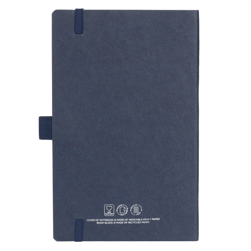 Notes formata A5 sa zaobljenim ivicama, dizajniran kao praktičan promotivni proizvod za svakodnevnu upotrebu. Opremljen je elastičnom trakom i držačem za olovku, što omogućava uredno i sigurno nošenje. Savitljiva korica izrađena je od perivog papira (washed kraft), dok je unutrašnji knjižni blok od recikliranog papira. Knjižni blok u linije sa 160 strana krem papira gramature 70 g/m² pogodan je za beleške, planiranje i promotivne kampanje sa naglaskom na održivost. Ključne karakteristike: Notes • Format A5 • 160 strana • Knjižni blok u linije • Krem papir 70 g/m² • Knjižni blok od recikliranog papira • Savitljiva korica od perivog papira (washed kraft) • Zaobljene ivice • Elastična traka • Držač za olovku